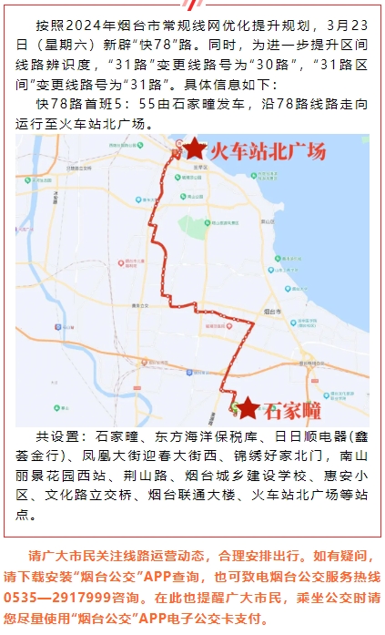 【通告】3月23日新辟“快78”路,31路(含區間)變更線路號
